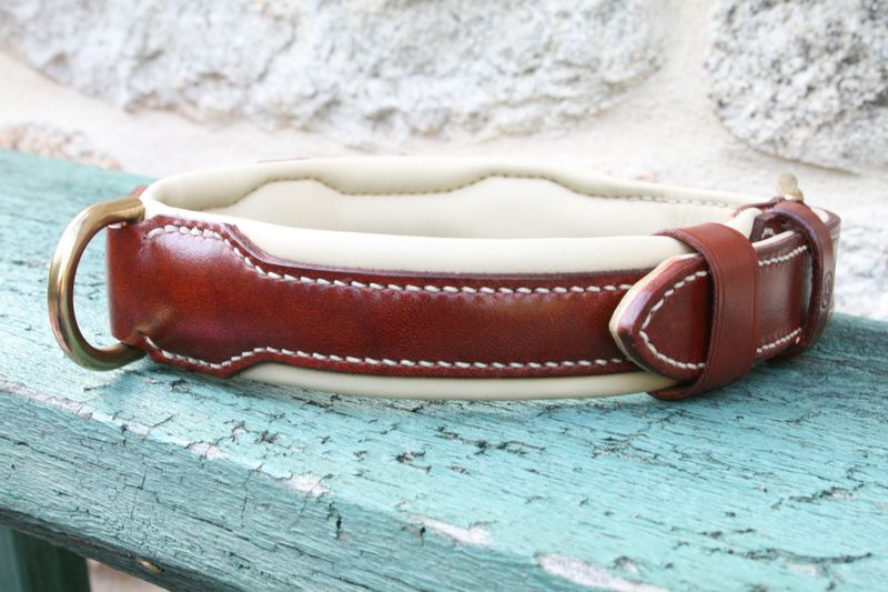 Collier cuir HAVANE doublé CREME : l’incontournable pour un malinois